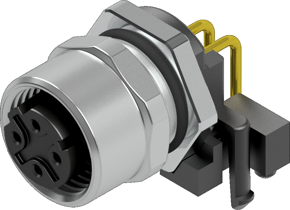 M12-FD04-THFP-55/00 M12 Circular Connector D-Coding 4-pin Female, THT Right Angle, PCB Panel Front Mount. Waterproof IP67. Coding in accordance with IEC 61076-2-101:2012 standards. Others contacts counts on request. |