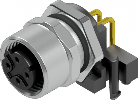 M12-FA05-THFP-55/X00 M12 Circular Connector A-Coding 5-pin Female, THT Right Angle, PCB Panel Front Mount. Waterproof IP67. Coding in accordance with IEC 61076-2-101:2012 standards. Others contacts counts on request. |