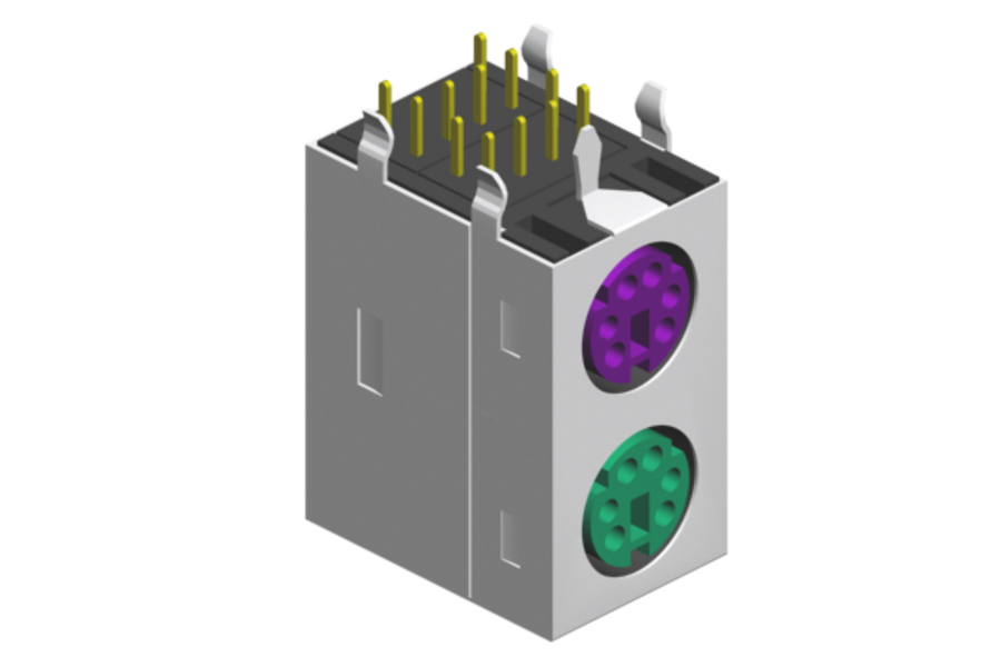 Mini-DIN Dual port THT 90°, 2x 6-pole over top of each other. Available PC99 type and color code.