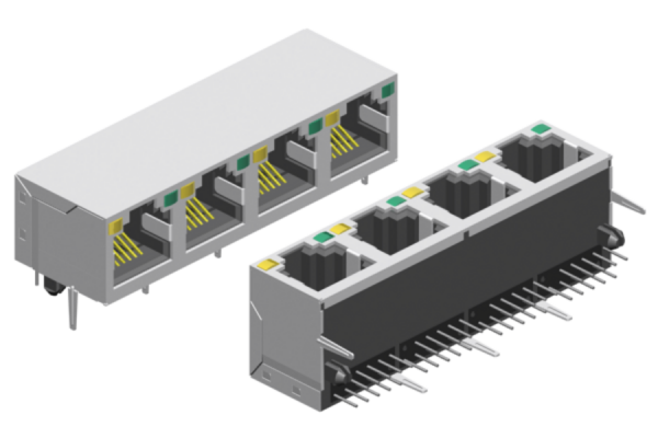 I/O Connectors > Modular Jacks and Plugs > 3- Modular Jack Multi port Side by Side - THT - > RJ45 >
