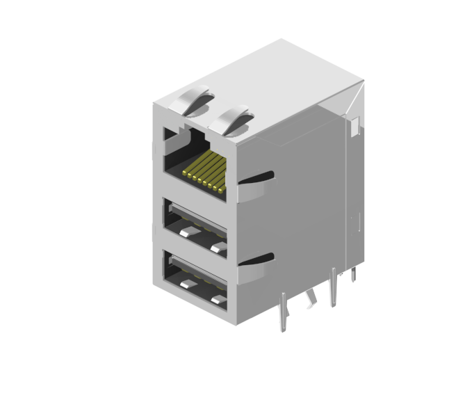 Modular Jack Combo port, RJ45 Type 8P8C - 1x USB A 1.1 or 2.0, THT, Side Entry, Shielded, w-o LED |