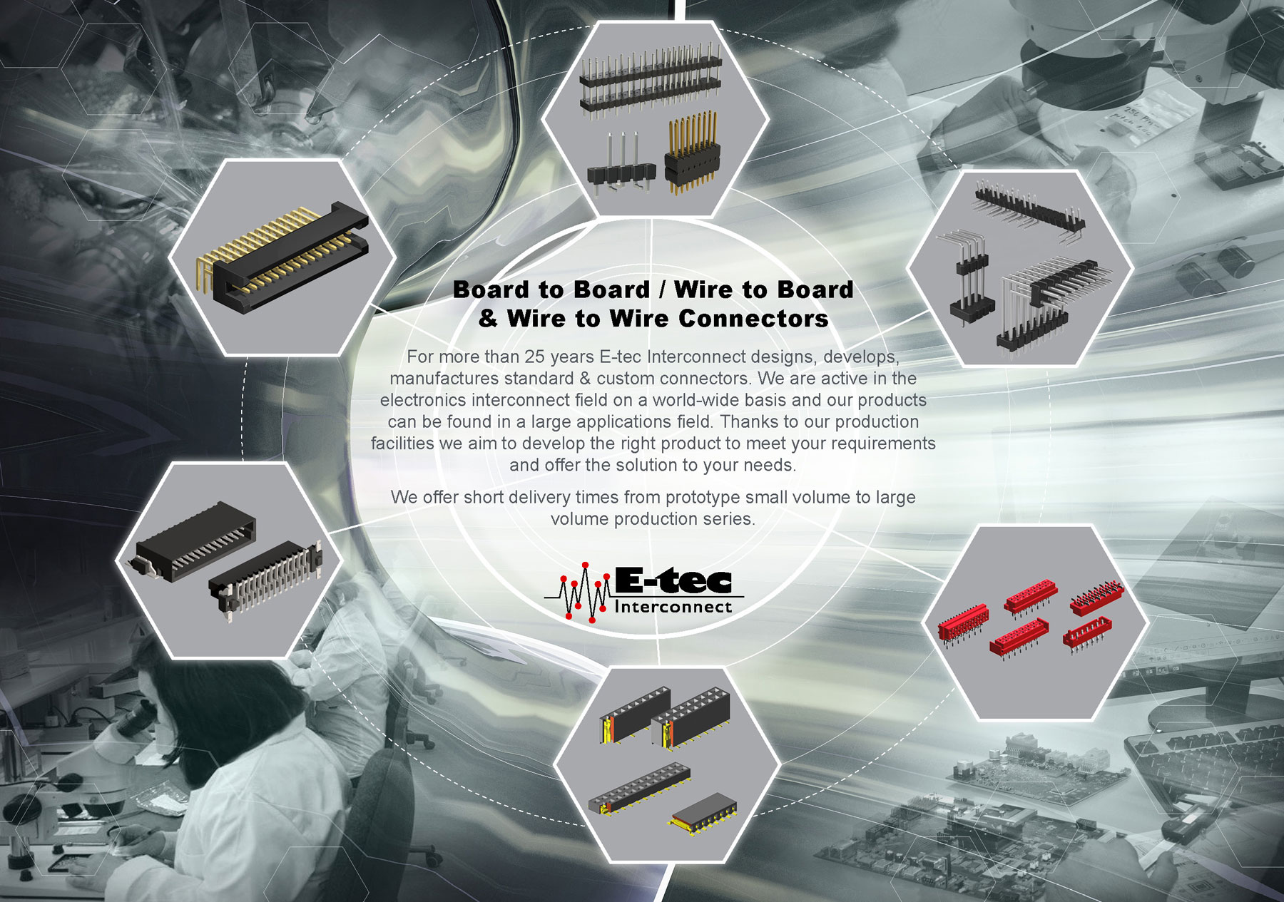 For more than 25 years E-tec Interconnect designs, develops, manufactures standard & custom connectors. We are active in the electronics interconnect field on a world-wide basis and our products can be found in a large applications field. Thanks to our production facilities we aim to develop the right product to meet your requirements and offer the solution to your needs.