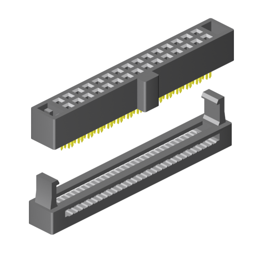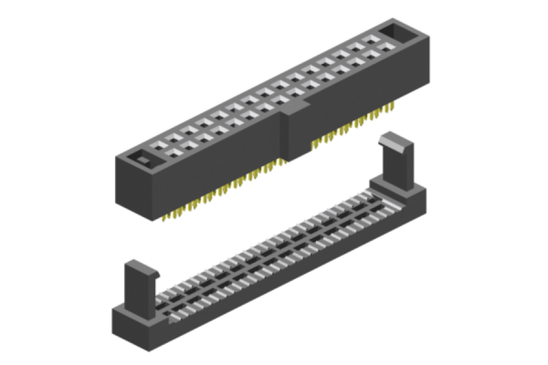 IDC CONNECTORS - IDC Female Headers 1.27mm pitch. A perfect solution to attach a AWG30 flat-ribbon cables with a pitch of 0.635mm pitch. Design to mate with the E-tec Box Header Series SLS - xxx - H510 - 55/11X. HIgh quality dual beam contacts.