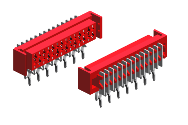 MMF - xxx - RL50 - 99 Mini-Mate™ "female" connector, pitch 1.27mm interstitial (offset) in horizontal THT soldering technology as "latch shape" version. Reverse polarity / twist protection by means of a notch on one side. To accommodate the polarization nose of the "male" connector, an additional hole (Ø1.80mm) is required in the PCB. |