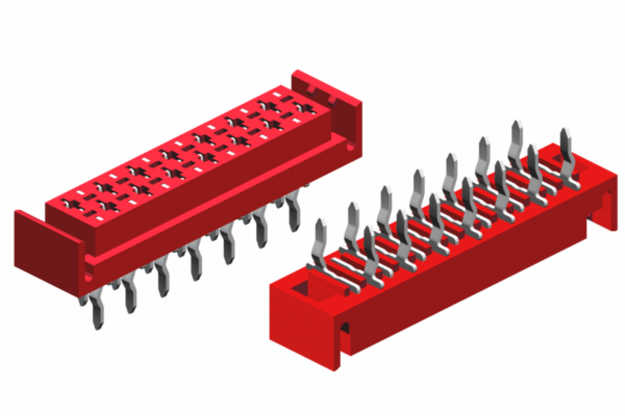 MMF - xxx - SL50 - 99/X Mini-Mate ™ "female" connector, pitch 1.27mm interstitial (offset) in THT soldering technology as "Latch Shape" version with snap-in lugs. Reverse polarity / twist protection by means of a notch on one side. To accommodate the polarization nose of the "male" connector, an additional hole (Ø1.80mm) is required in the PCB. |