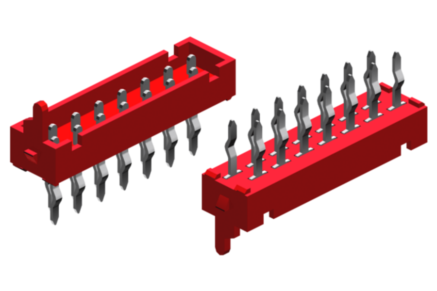 MMM - xxx - SS50 - 99 Mini-Mateâ„¢ "male" connectors, pitch 1.27mm interstitial (offset) in vertical THT soldering technology. Ideal for connecting a Mini-Mateâ„¢ "female" connector to establish a board-to-board connection. A polarization nose is the polarity reversal protection. |
