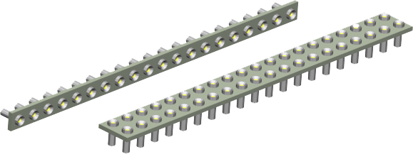 SLP-xxx-Xxxx-xx Socket Strips THT Through hole precision Low and Super low turned contacts, available in 1 -2 or 3 row in pitch and row spacing 2.54 mm and 2.41 mm max hight and 0.60 mm minimum height. Different predefined terminals variants according to your needs. Platings Tin/Gold, Tin/Tin or Gold/Gold. |