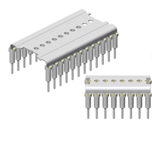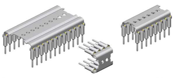 DCA-xxx-Sxxx-95 DIP IC-Socket THT Through hole precision turned contacts, supplied with Aluminium carrier body. Convenient way to load loose receptacles on a PCB board. 6 to 64 pin versions in pitch 2.54 mm and DIP spacing 5.08 mm (.200"), 7.62 mm (.300"), 10.16 mm (.400"), 15.24 mm (.600") and 22.86 mm (.900"). Different predefined terminals variants according to your needs. Platings Tin/Gold, Tin/Tin or Gold/Gold. |