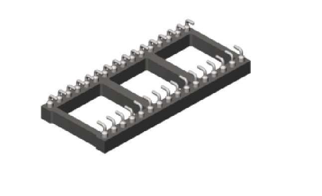 DIP IC-Socket SMT Reversed Gullwing bended precision turned contacts, supplied with our without bars in the center for open insulators. Closed insulators also available. Pick & Place pad option. 6 to 64 pin versions in pitch 2.54 mm and DIP spacing 5.08 mm (.200"), 7.62 mm (.300"), 10.16 mm (.400"), 15.24 mm (.600") and 22.86 mm (.900"). Platings Tin/Gold.