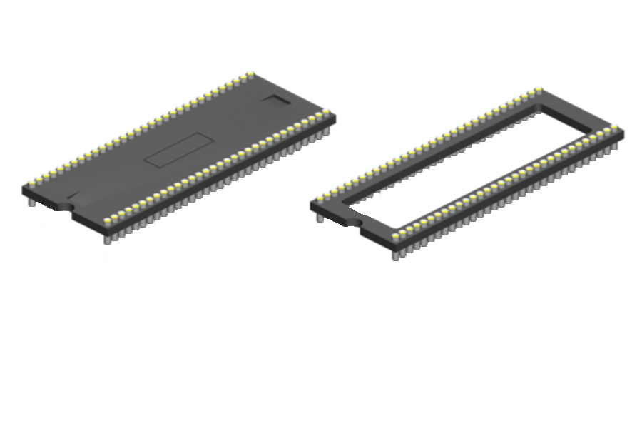 SDx-xxx-Xxxx-xx DIP IC-Socket SMT precision turned contacts, supplied with open or closed insulators. 24 to 64 pin versions in pitch 1.778 mm and DIP spacing 10.16 mm (.400"), 15.24 mm (.600") and 19.05 mm (.750"). Different predefined terminals variants according to your needs. Platings Tin/Gold, Tin/Tin or Gold/Gold. |