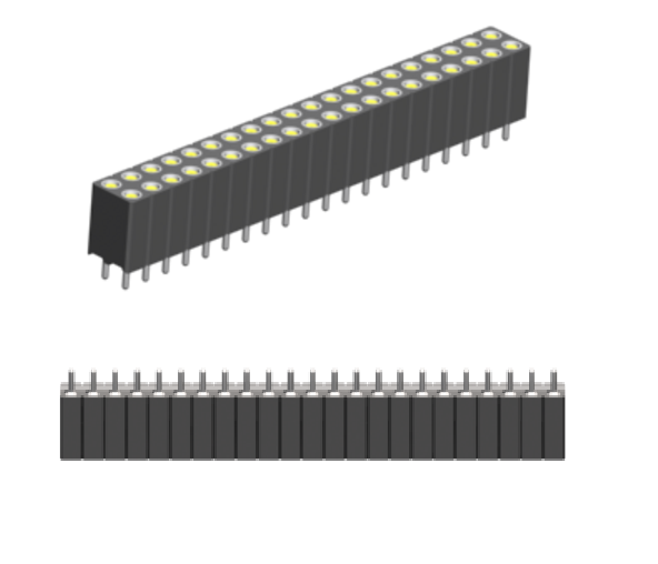 Socket Strips THT Through hole precision turned contacts, available in 1 or 2 row in pitch and row spacing 2.54 mm with plastic height above PCB 7.00 mm . Accepts square pin 0.65 x 0.65 mm as well as round pins dia. 0.65 to 0.85 mm. Platings Tin/Gold, Others on request.