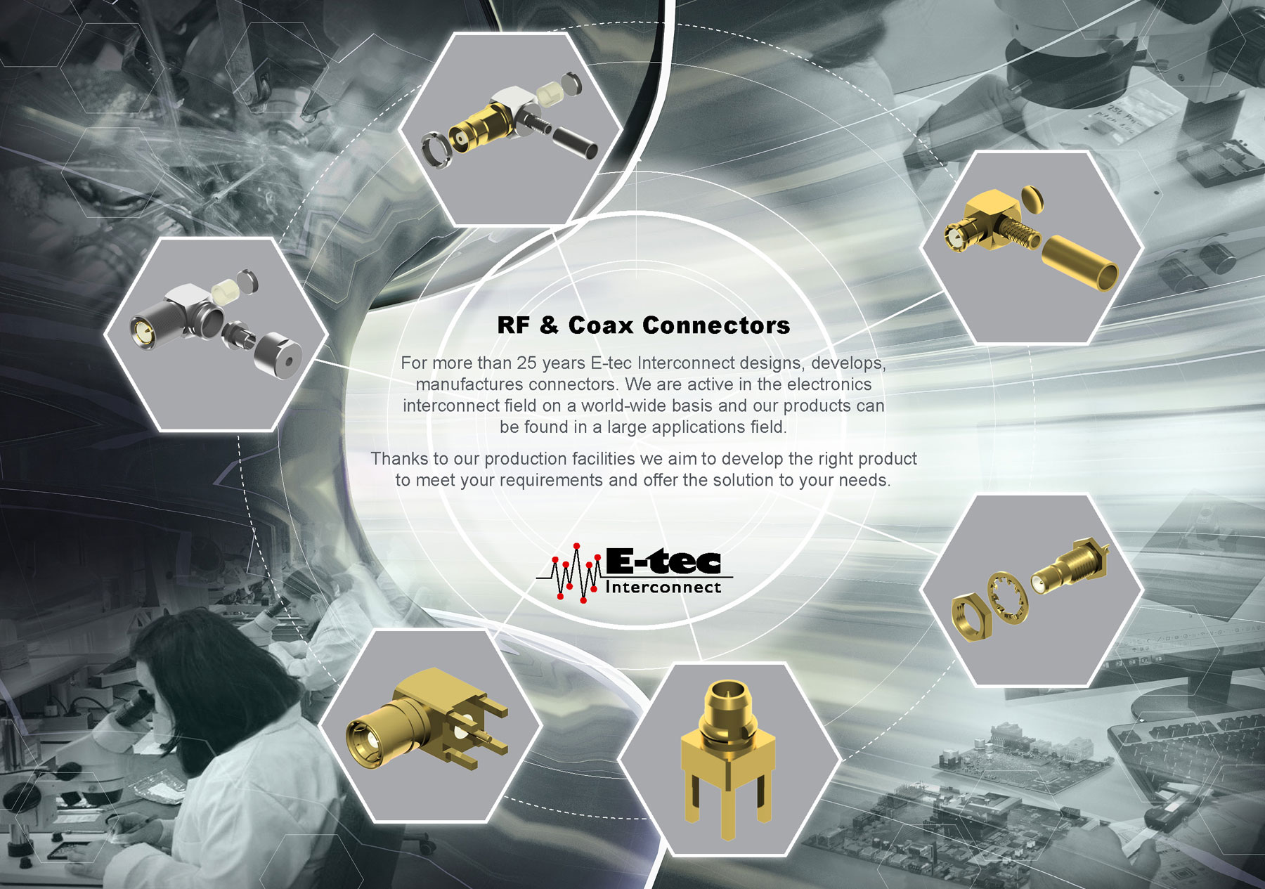 For more than 15 years E-tec Interconnect designs, develops, manufactures connectors. We are active in the electronics interconnect field on a world-wide basis and our products can be found in a large applications field. Thanks to our production facilities we aim to develop the right product to meet your requirements and offer the solution to your needs.