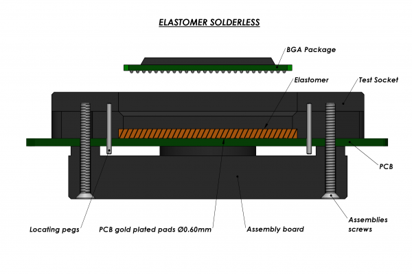 Test Sockets & Adapters > Test Sockets for BGA - Bumped chip - WLCSP - eMMC Package > Pitch from 1.00mm to 1.26mm > Elastomer Solderless Compression Test Socket >