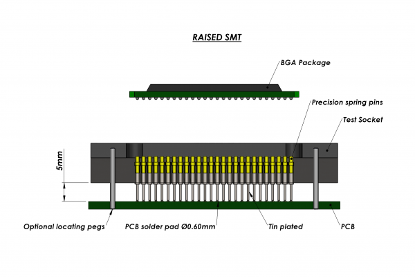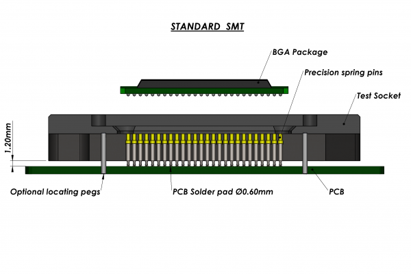 Test Sockets & Adapters > Test Sockets for BGA - Bumped chip - WLCSP - eMMC Package > Pitch from 1.27mm to upwards >