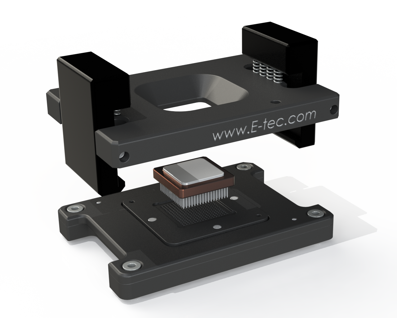 CPQ####-0398-######55L# Probe Pin (Pogo) Solderless compression Test Sockets type are available for any chip size and pitch and are attached with 2, 4 or 8 screws to the PCB. The assembly board ensures perfect coplanarity of the socket. Contact reliability is guaranteed with spring loaded gold plated contacts, which are pressed onto gold plated PCB pads. Probe Pin (Pogo) Solderless compression type sockets are available with all retention systems. We aim to solve your requirements. Please note, we will always request the chip data to ensure we offer a compatible socket. |