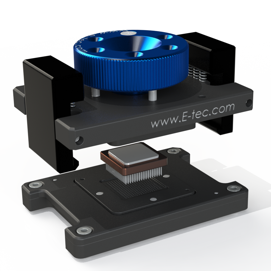 CPD####-0398-######55L# Probe Pin (Pogo) Solderless compression Test Sockets type are available for any chip size and pitch and are attached with 2, 4 or 8 screws to the PCB. The assembly board ensures perfect coplanarity of the socket. Contact reliability is guaranteed with spring loaded gold plated contacts, which are pressed onto gold plated PCB pads. Probe Pin (Pogo) Solderless compression type sockets are available with all retention systems. We aim to solve your requirements. Please note, we will always request the chip data to ensure we offer a compatible socket. |
