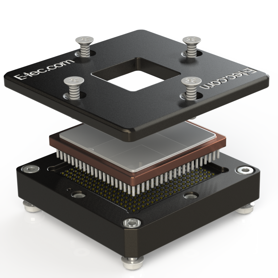 CPS####-0398-######55L# Probe Pin (Pogo) Solderless compression Test Sockets type are available for any chip size and pitch and are attached with 2, 4 or 8 screws to the PCB. The assembly board ensures perfect coplanarity of the socket. Contact reliability is guaranteed with spring loaded gold plated contacts, which are pressed onto gold plated PCB pads. Probe Pin (Pogo) Solderless compression type sockets are available with all retention systems. We aim to solve your requirements. Please note, we will always request the chip data to ensure we offer a compatible socket. |