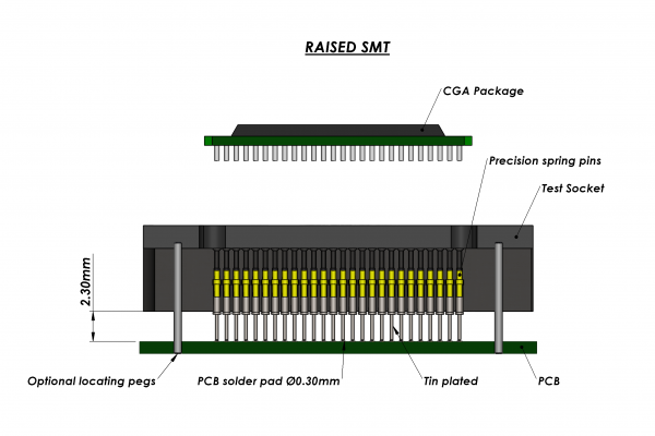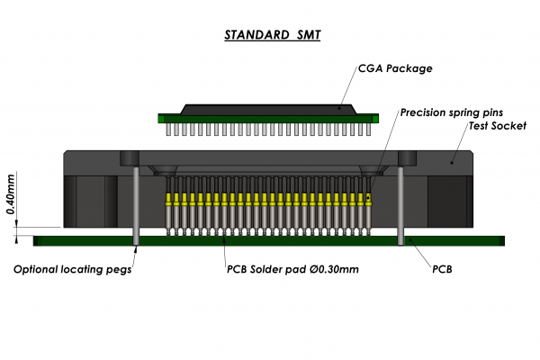 How to connect the Test Socket to your PCB? You can find here down the available options for your already selected pitch. PLEASE SELECT THE PCB MOUTING SOLUTION FOR YOUR FUTURE SOCKET :