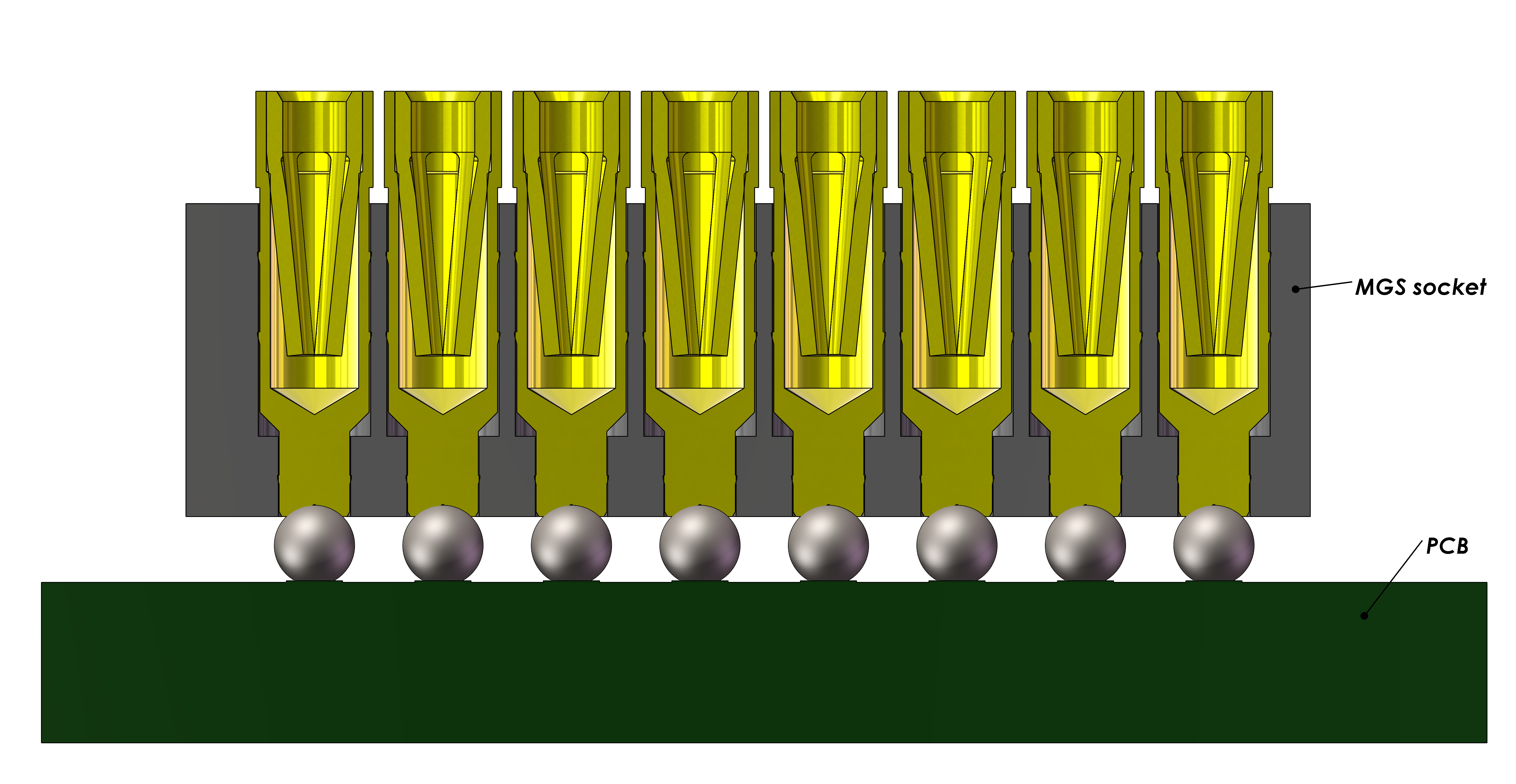 Keywords : MGS####-E###-####5##, MGS Female contact SMT Solderball Adapter to Plug-in a Test Socket