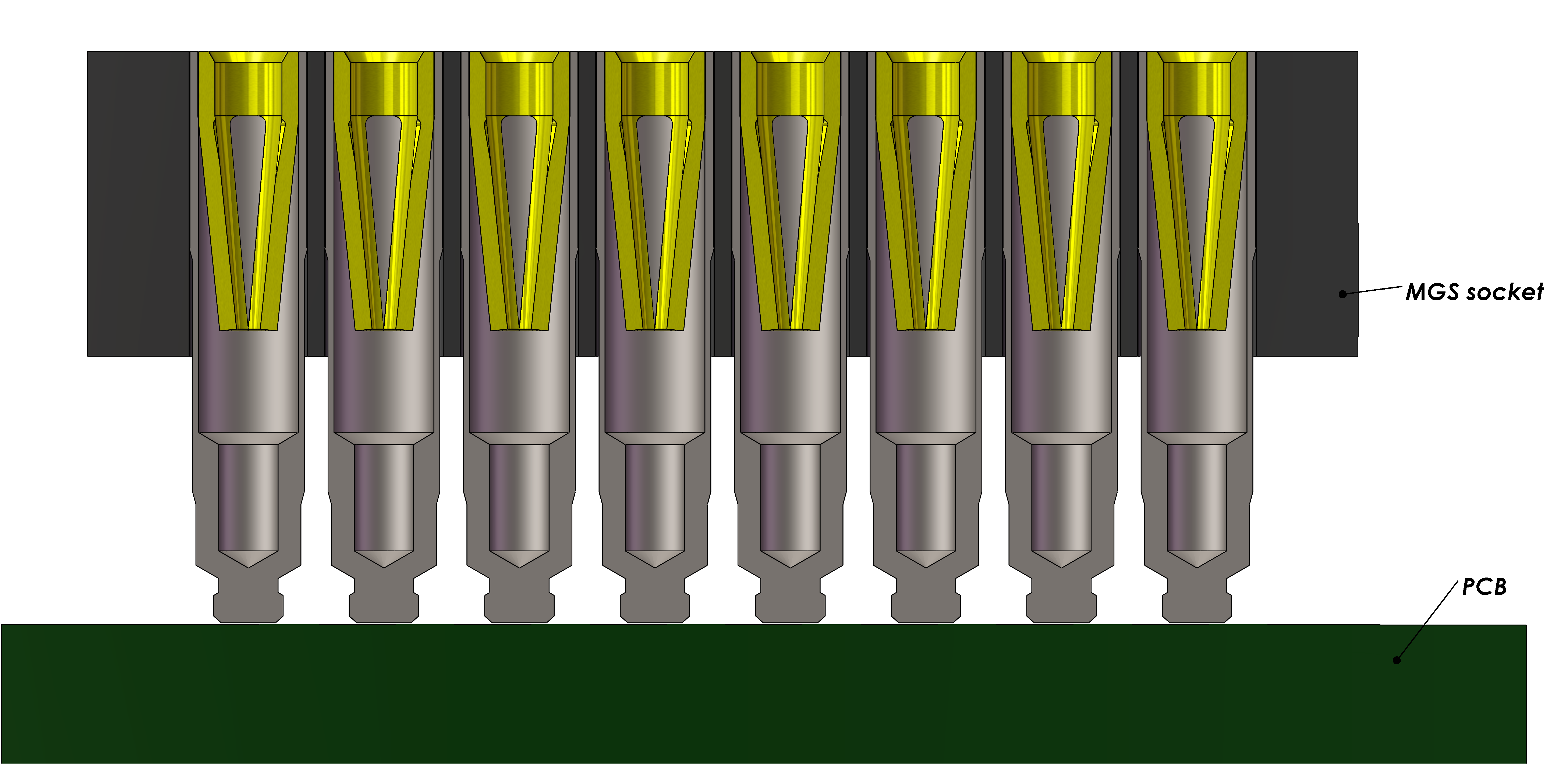 The E-tec Interconnect MGS female contact system was develop as in certain cases, you are not able to place any test socket on your board because: