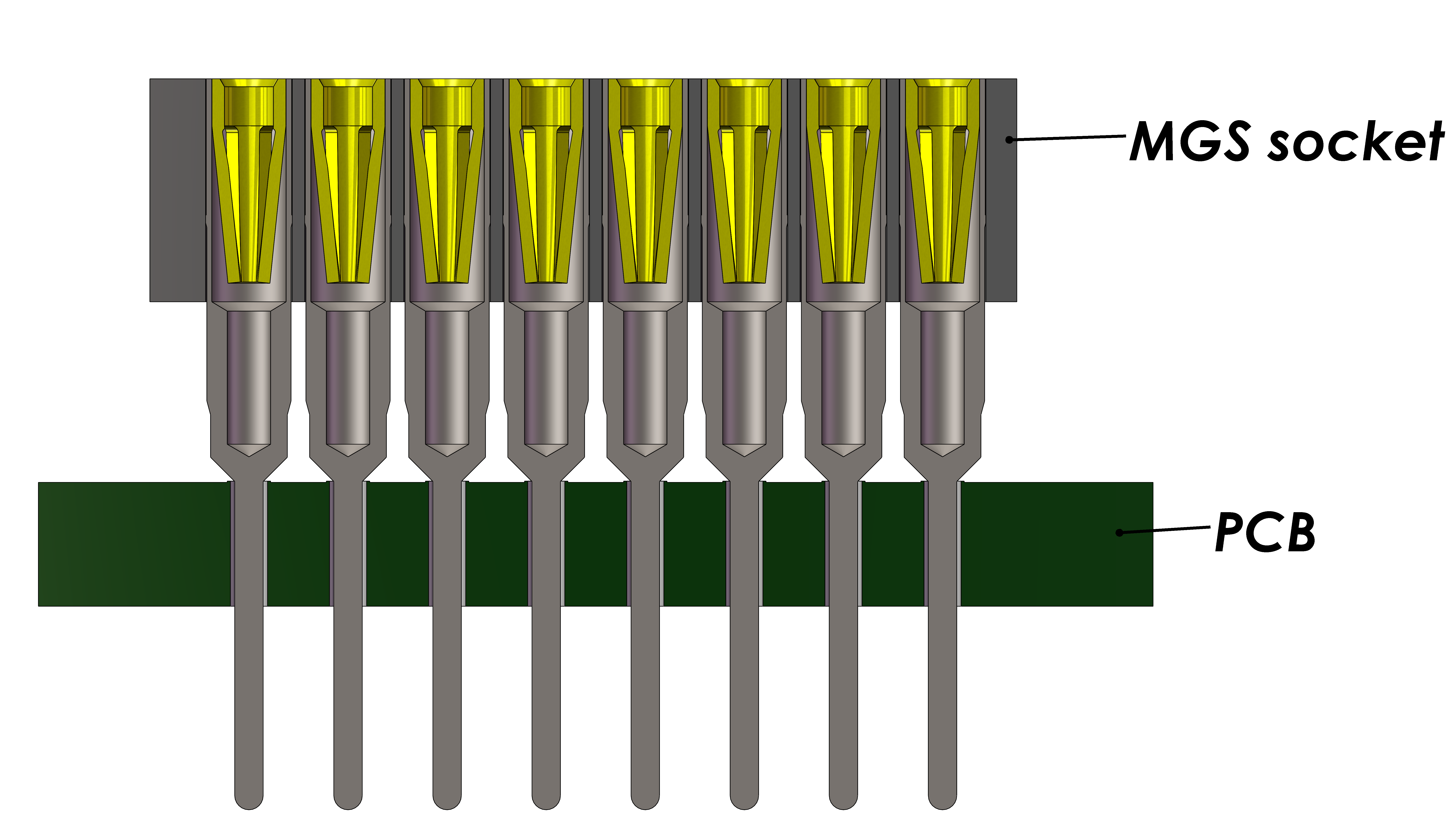 Keywords : MGS####-E###-####5##, MGS Female contact Through-hole (THT) Adapter to Plug-in a Test Socket
